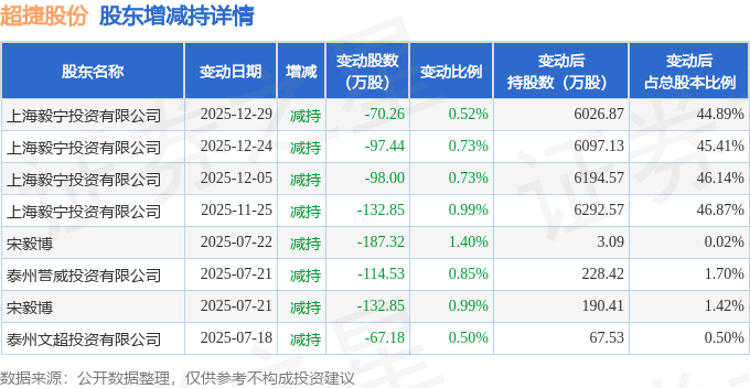 该股近半年内有股东持股变动,合计净减持900.43万股,股东增减持明细如下表: