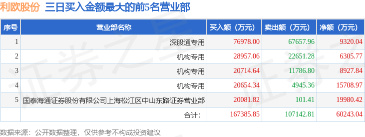 从龙虎榜公布的三日买卖数据来看,机构合计净买入3.09亿元,北向资金合计净买入9320.04万元。上海中山东路、消闲派等知名游资榜上有名。(知名游资上海中山东路一般指国泰海通证券股份有限公司上海松江区中山东路证券营业部席位、知名游资消闲派一般指国泰海通证券股份有限公司宜昌沿江大道证券营业部席位,根据市场资料整理,仅供参考)