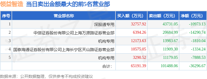 从龙虎榜公布的当日买卖数据来看,机构合计净卖出5437.08万元,北向资金合计净卖出1.1亿元。章盟主等知名游资榜上有名。(知名游资章盟主一般指国泰海通证券股份有限公司上海浦东新区海阳西路证券营业部席位,根据市场资料整理,仅供参考)