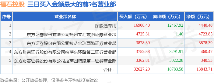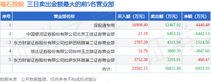 证券之星消息,沪深交易所2026年1月12日公布的交易公开信息显示,福石控股(300071)因连续三个交易日内,涨幅偏离值累计达到30%的证券登上龙虎榜。此次是近5个交易日内第1次上榜。