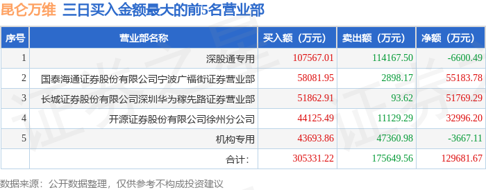 从龙虎榜公布的当日买卖数据来看,机构合计净卖出5.36亿元,北向资金合计净卖出2.5亿元。章盟主等知名游资榜上有名。(知名游资章盟主一般指国泰海通证券股份有限公司宁波广福街证券营业部席位,根据市场资料整理,仅供参考)