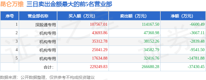 从龙虎榜公布的三日买卖数据来看,机构合计净卖出3.08亿元,北向资金合计净卖出6600.49万元。章盟主等知名游资榜上有名。(知名游资章盟主一般指国泰海通证券股份有限公司宁波广福街证券营业部席位,根据市场资料整理,仅供参考)