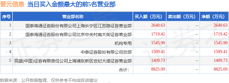 证券之星消息,沪深交易所2026年1月12日公布的交易公开信息显示,普元信息(688118)因有价格涨跌幅限制的日收盘价格涨幅达到15%的前五只证券登上龙虎榜。此次是近5个交易日内第1次上榜。