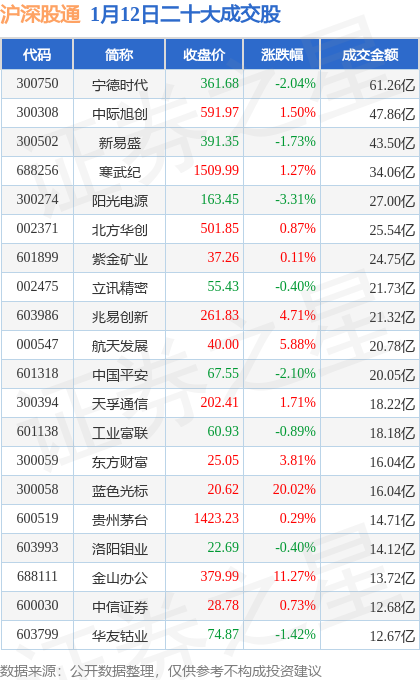 当日北向资金余额额度充足,杭萧钢构(600477)领涨,涨幅10.0%,交易所公布的沪深股通二十大成交股中成交额前三的为宁德时代、中际旭创、新易盛,成交额分别为61.26亿元、47.86亿元、43.5亿元。详情可见下表: