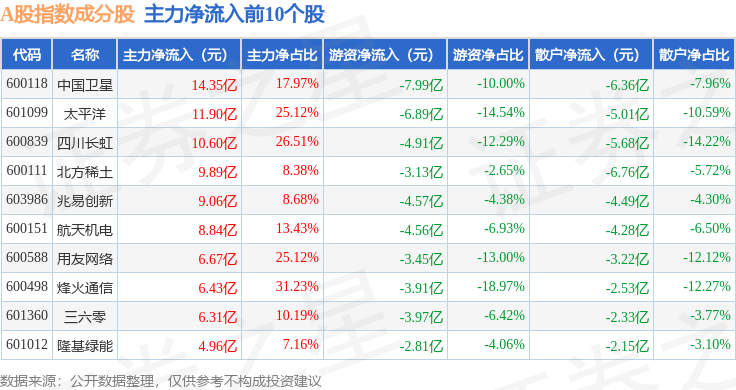 资金流向方面,A股指数(000002)成份股当日主力资金净流出合计258.18亿元,游资资金净流出合计8.76亿元,散户资金净流入合计266.94亿元。成份股资金流向详情见下表: