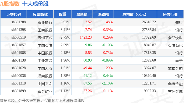 A股指数(000002)十大成份股详情如下: