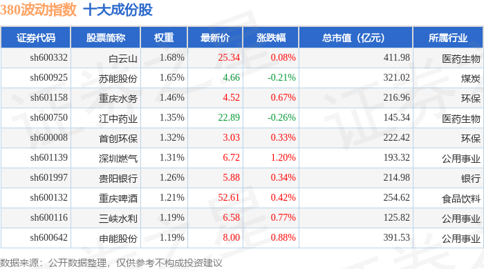 证券之星消息,1月12日,380波动(000130)指数报收于13626.85点,涨0.42%,成交308.34亿元,换手率1.19%。当日该指数成份股中,上涨的有61家,中文传媒以7.52%的涨幅领涨,下跌的有31家,云天化以2.66%的跌幅领跌。