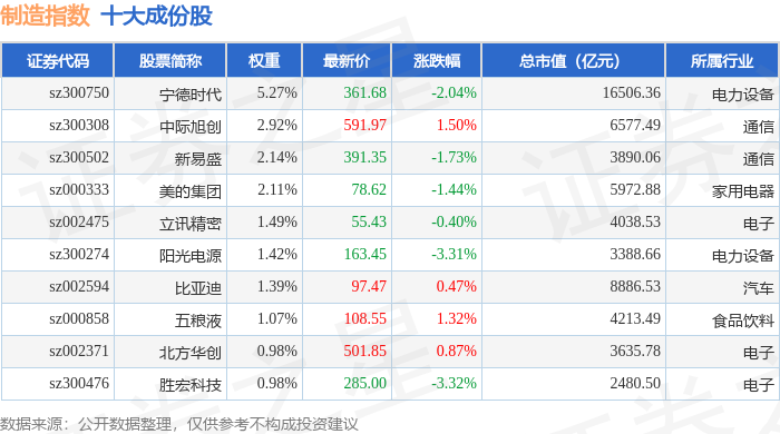 资金流向方面,制造指数(399233)成份股当日主力资金净流出合计221.05亿元,游资资金净流入合计1.63亿元,散户资金净流入合计219.43亿元。成份股资金流向详情见下表: