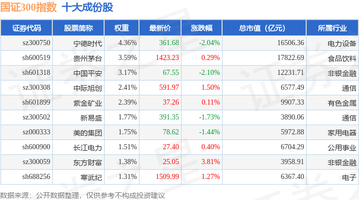 证券之星消息,1月12日,国证300(399312)指数报收于5696.92点,涨0.91%,成交8945.6亿元,换手率1.13%。当日该指数成份股中,上涨的有195家,国博电子以20.0%的涨幅领涨,下跌的有100家,新产业以3.84%的跌幅领跌。