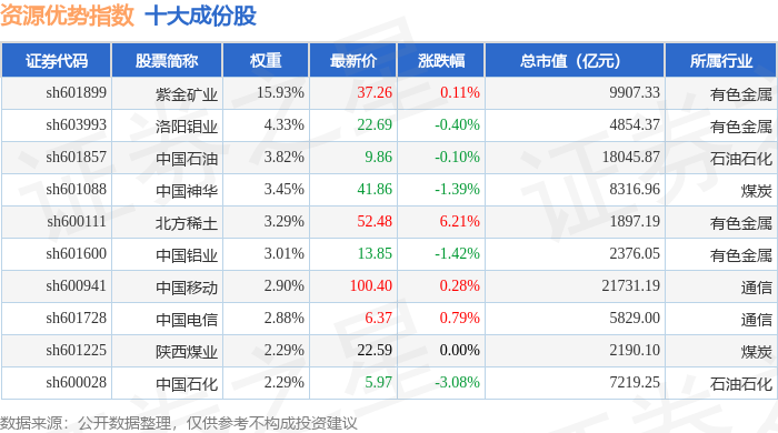 资源优势(399319)指数十大成份股详情如下: