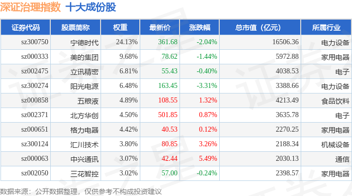 深证治理(399328)指数十大成份股详情如下: