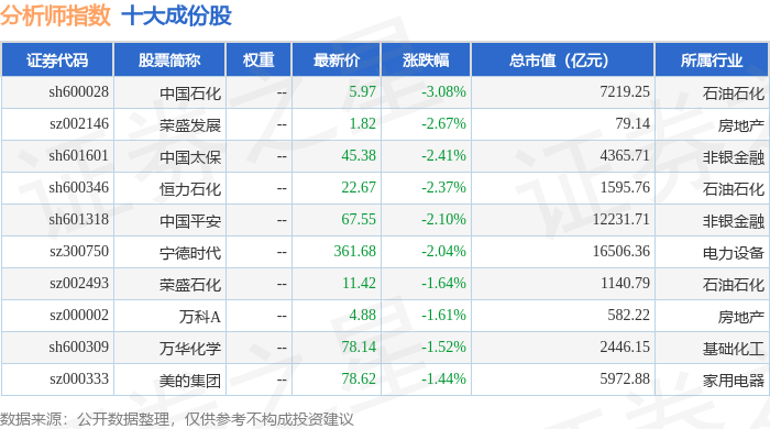 分析师指数(399354)十大成份股详情如下: