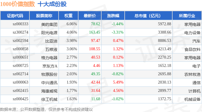 1000价值(399631)指数十大成份股详情如下: