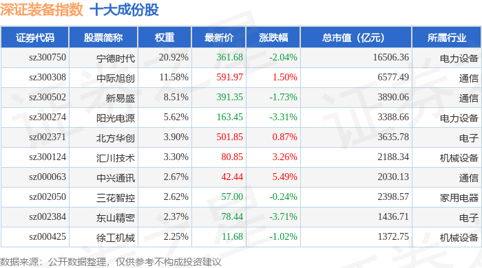 证券之星消息,1月12日,深证装备(399636)指数报收于8542.49点,涨0.67%,成交3064.73亿元,换手率5.33%。当日该指数成份股中,上涨的有51家,华力创通以20.01%的涨幅领涨,下跌的有27家,大金重工以4.33%的跌幅领跌。