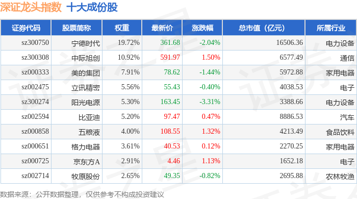 深证龙头(399653)指数十大成份股详情如下: