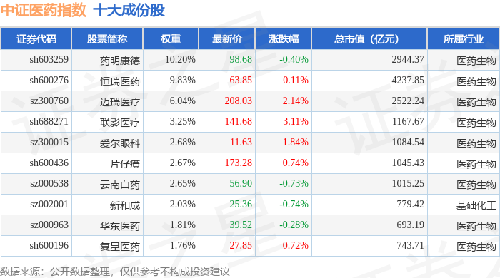 近10日内中证医药(399933)指数成份股做了调整,剔除了1只股票。