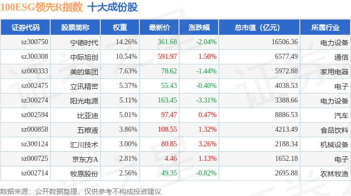 100ESG领先R(470030)指数十大成份股详情如下:
