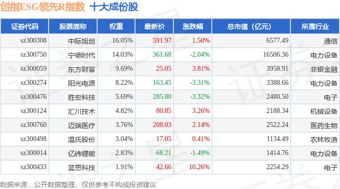创指ESG领先R(470031)指数十大成份股详情如下: