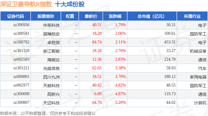深证卫星导航R(470050)指数十大成份股详情如下: