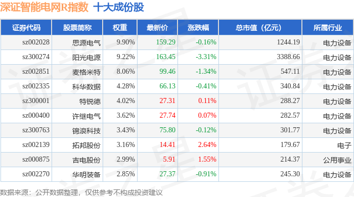 深证智能电网R(470054)指数十大成份股详情如下: