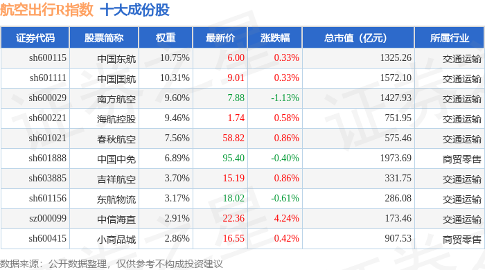 资金流向方面,航空出行R(480059)指数成份股当日主力资金净流出合计6.1亿元,游资资金净流入合计1.06亿元,散户资金净流入合计5.04亿元。成份股资金流向详情见下表: