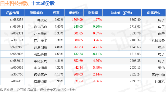 自主科技(980033)指数十大成份股详情如下: