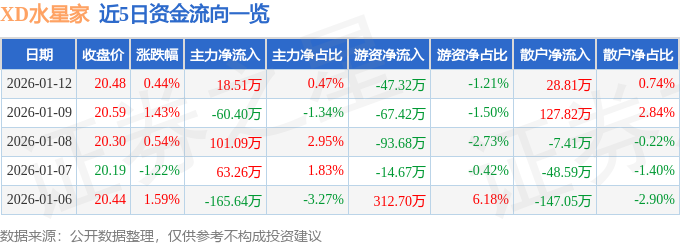 证券之星消息,截至2026年1月12日收盘,XD水星家(603365)报收于20.48元,上涨0.44%,换手率0.74%,成交量1.91万手,成交额3904.09万元。