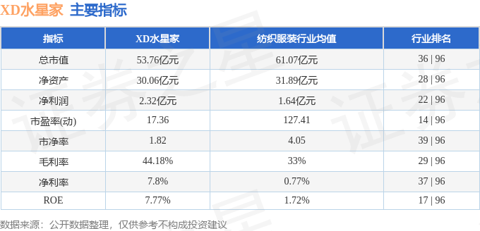 该股主要指标及行业内排名如下: