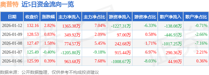 证券之星消息,截至2026年1月12日收盘,奥普特(688686)报收于132.16元,上涨2.82%,换手率1.22%,成交量1.5万手,成交额1.94亿元。