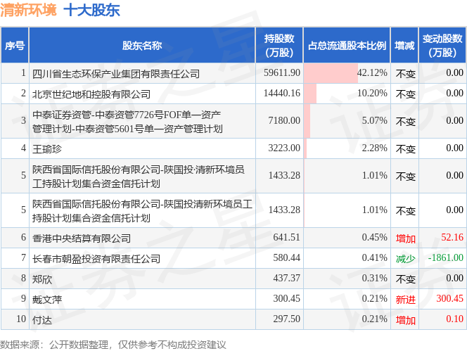 根据清新环境2025年三季报公布的十大股东详情如下:
