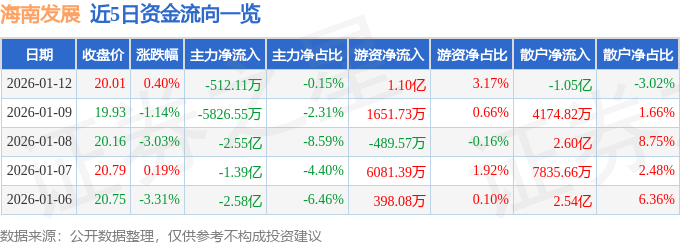证券之星消息,截至2026年1月12日收盘,海南发展(002163)报收于20.01元,上涨0.4%,换手率21.52%,成交量172.93万手,成交额34.87亿元。