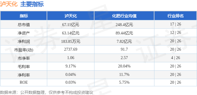 泸天化2025年三季报显示,前三季度公司主营收入34.23亿元,同比下降16.79%;归母净利润183.85万元,同比下降97.86%;扣非净利润-3904.48万元,同比下降3576.96%;其中2025年第三季度,公司单季度主营收入10.44亿元,同比下降15.62%;单季度归母净利润-4426.41万元,同比上升7.34%;单季度扣非净利润-4940.32万元,同比上升20.29%;负债率33.27%,投资收益1031.08万元,财务费用-1832.15万元,毛利率9.17%。泸天化(000912)主营业务:合成氨、尿素、复合肥、甲醇、硝酸、硝酸铵溶液等化学原料及化学制品制造和销售。