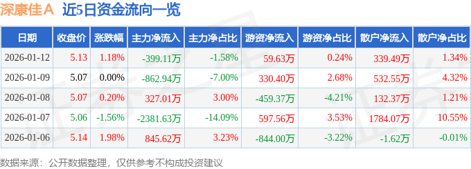 1月12日的资金流向数据方面,主力资金净流出399.11万元,占总成交额1.58%,游资资金净流入59.63万元,占总成交额0.24%,散户资金净流入339.49万元,占总成交额1.34%。