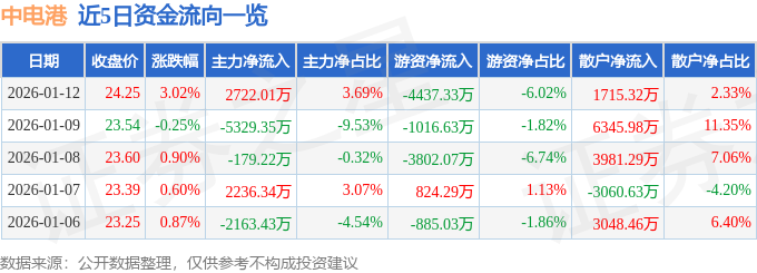 证券之星消息,截至2026年1月12日收盘,中电港(001287)报收于24.25元,上涨3.02%,换手率7.06%,成交量30.86万手,成交额7.38亿元。