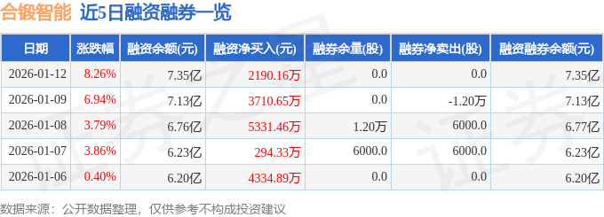 合锻智能融资融券信息显示,融资方面,当日融资买入3.2亿元,融资偿还2.98亿元,融资净买入2190.16万元,连续3日净买入累计1.12亿元。融券方面,融券卖出0.0股,融券偿还0.0股,融券余量0.0股,融券余额0.0万元。融资融券余额7.35亿元。