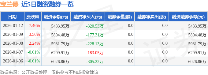 宝兰德融资融券信息显示,融资方面,当日融资买入1031.66万元,融资偿还1352.19万元,融资净偿还320.53万元。融券方面,融券卖出0.0股,融券偿还0.0股,融券余量0.0股,融券余额0.0万元。融资融券余额5483.95万元。