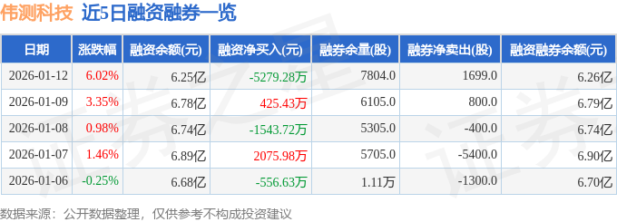 伟测科技融资融券信息显示,融资方面,当日融资买入5353.0万元,融资偿还1.06亿元,融资净偿还5279.28万元。融券方面,融券卖出1699.0股,融券偿还0.0股,融券余量7804.0股,融券余额96.96万元。融资融券余额6.26亿元。