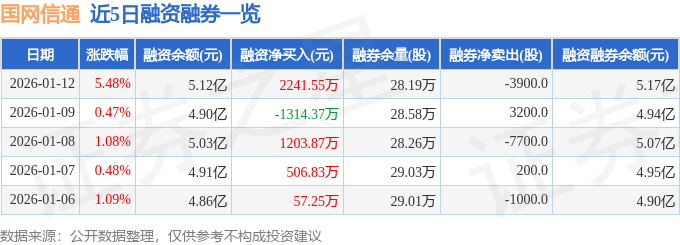 证券之星消息,截至2026年1月12日收盘,国网信通(600131)报收于17.9元,上涨5.48%,换手率2.66%,成交量31.76万手,成交额5.6亿元。