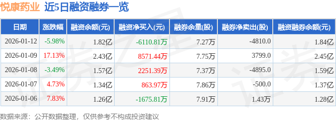 证券之星消息,截至2026年1月12日收盘,悦康药业(688658)报收于29.89元,下跌5.98%,换手率4.12%,成交量18.54万手,成交额5.61亿元。