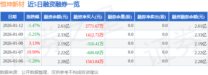 恒坤新材融资融券信息显示,融资方面,当日融资买入9843.2万元,融资偿还7071.53万元,融资净买入2771.67万元。融券方面,融券卖出0.0股,融券偿还0.0股,融券余量0.0股,融券余额0.0万元。融资融券余额2.61亿元。