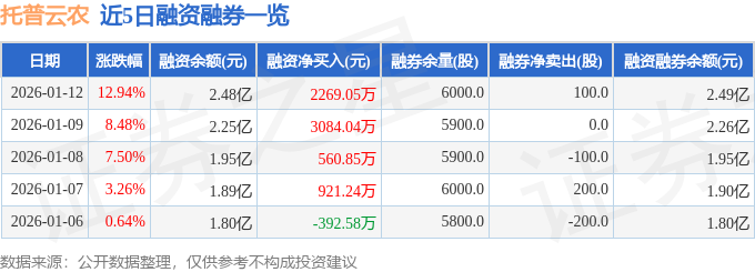 证券之星消息,截至2026年1月12日收盘,托普云农(301556)报收于137.32元,上涨12.94%,换手率31.57%,成交量9.31万手,成交额12.12亿元。