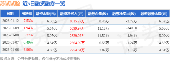 苏试试验融资融券信息显示,融资方面,当日融资买入2.7亿元,融资偿还1.84亿元,融资净买入8615.27万元,连续3日净买入累计1.66亿元。融券方面,融券卖出1100.0股,融券偿还2.83万股,融券余量8.46万股,融券余额181.21万元。融资融券余额6.52亿元。