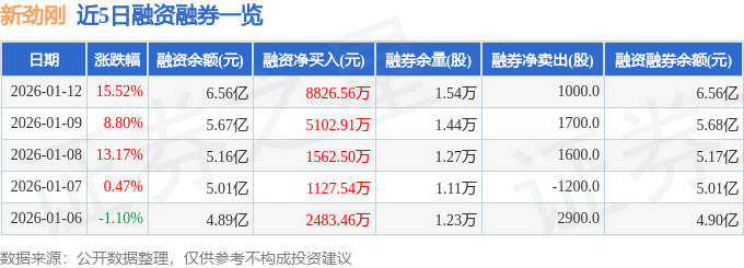 新劲刚融资融券信息显示,融资方面,当日融资买入2.61亿元,融资偿还1.73亿元,融资净买入8826.56万元,连续3日净买入累计1.55亿元。融券方面,融券卖出1000.0股,融券偿还0.0股,融券余量1.54万股,融券余额51.24万元。融资融券余额6.56亿元。