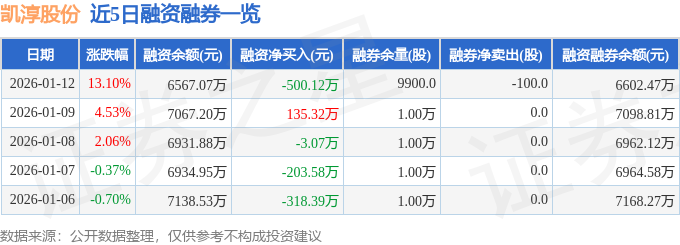 凯淳股份融资融券信息显示,融资方面,当日融资买入2667.73万元,融资偿还3167.85万元,融资净偿还500.12万元。融券方面,融券卖出0.0股,融券偿还100.0股,融券余量9900.0股,融券余额35.39万元。融资融券余额6602.47万元。