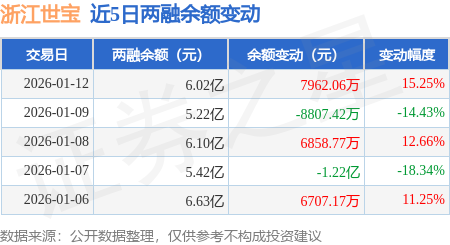 证券之星消息,1月12日,浙江世宝(002703)融资买入3.27亿元,融资偿还2.48亿元,融资净买入7947.14万元,融资余额6.01亿元,近20个交易日中有11个交易日出现融资净买入。