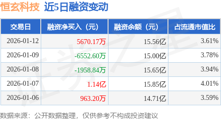 证券之星消息,1月12日,恒玄科技(688608)融资买入4.04亿元,融资偿还3.47亿元,融资净买入5670.17万元,融资余额15.56亿元,近20个交易日中有12个交易日出现融资净买入。