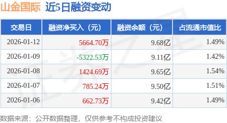 证券之星消息,1月12日,山金国际(000975)融资买入1.66亿元,融资偿还1.09亿元,融资净买入5664.7万元,融资余额9.68亿元。