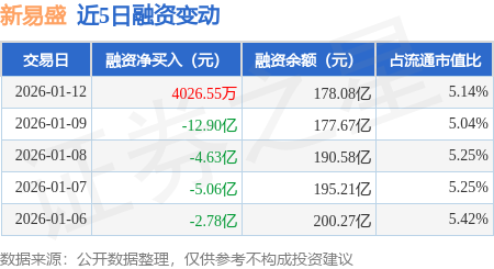 证券之星消息,1月12日,新易盛(300502)融资买入29.0亿元,融资偿还28.59亿元,融资净买入4026.55万元,融资余额178.08亿元。