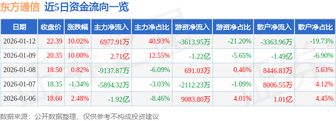 1月12日的资金流向数据方面,主力资金净流入6977.91万元,占总成交额40.93%,游资资金净流出3613.95万元,占总成交额21.2%,散户资金净流出3363.96万元,占总成交额19.73%。