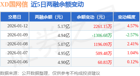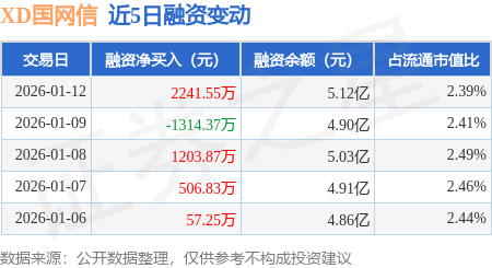 证券之星消息,1月12日,XD国网信(600131)融资买入7940.34万元,融资偿还5698.78万元,融资净买入2241.55万元,融资余额5.12亿元。